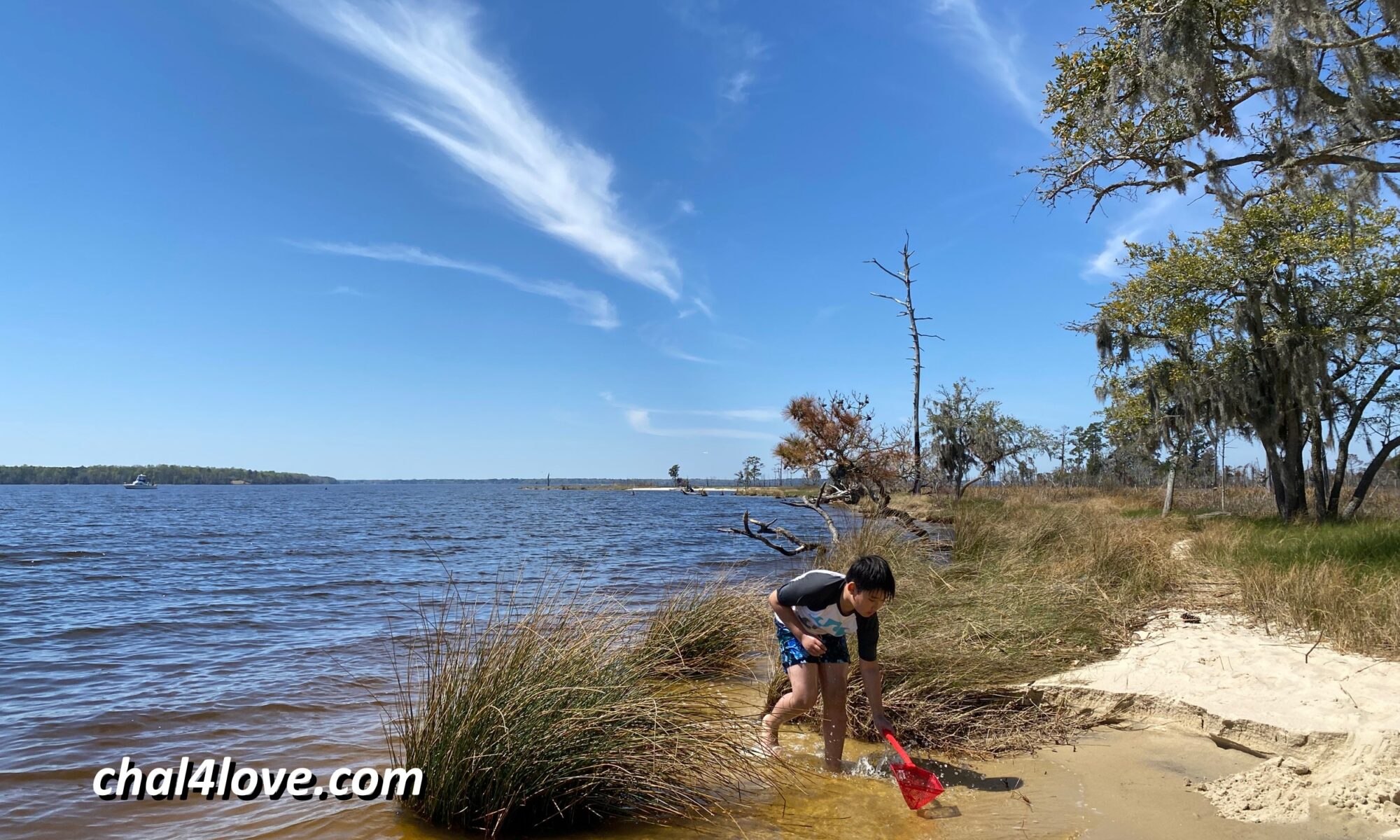 來Goose Creek露營時,我會做漢堡當中餐,然後來到Pamlico河畔的沙灘野餐。